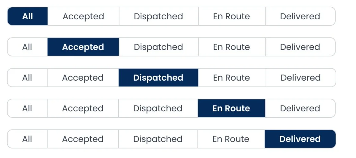 TruxWeb: Homescreen has different tabs for shipments (active requests, in review, confirmed, rejected) - makes it easy to navigate between shipments and to keep track of ones that have been confirmed/rejected